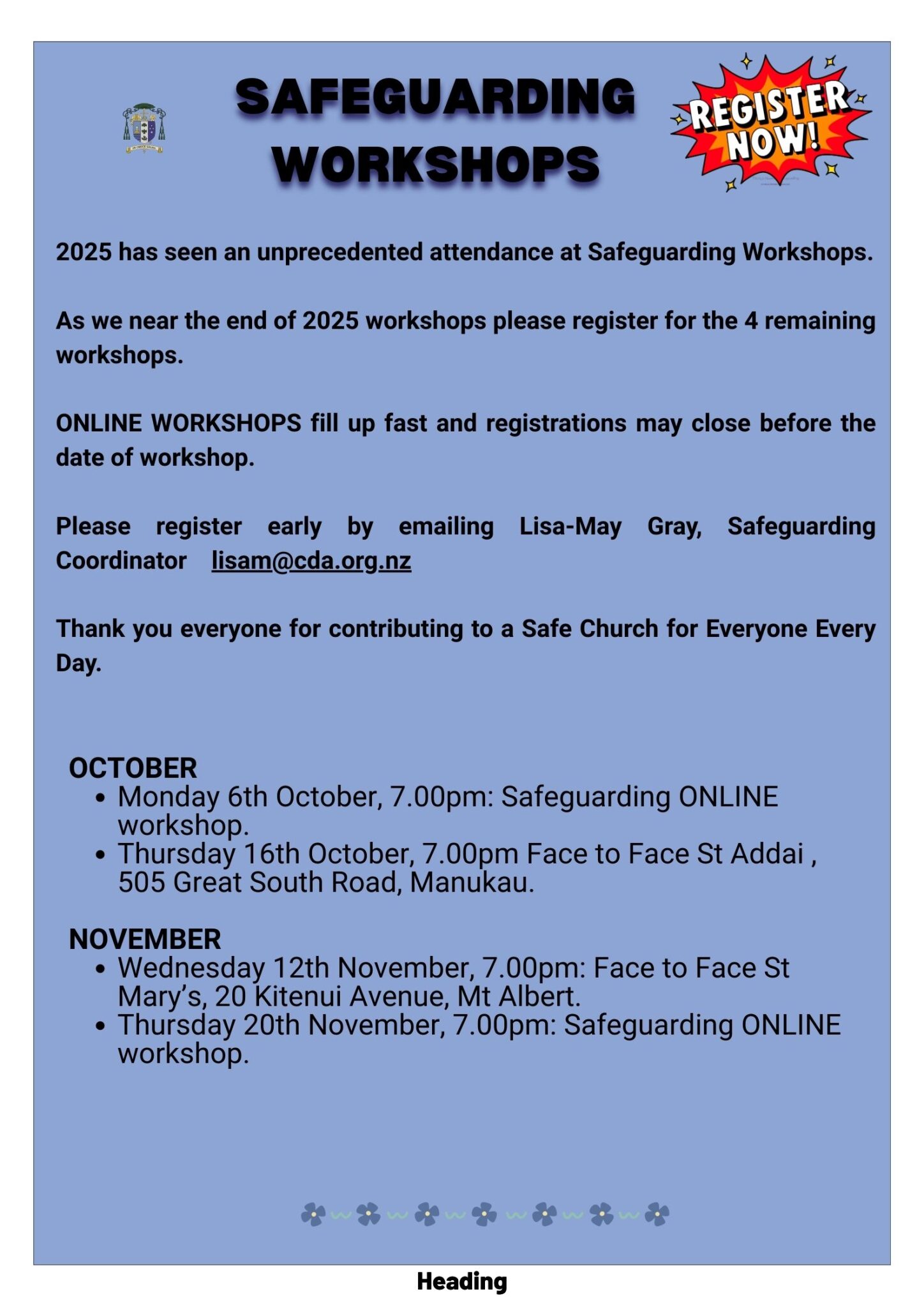 November-5 {Wed}, 12:30pm, Online Workshop via-Catholic Diocese of Christchurch. Info here.